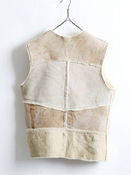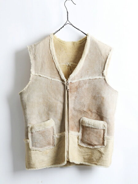 フルジップ シープスキン ムートン ベスト ( メンズ 男性 L ) 60年代 無地 アウター 羊革 古着 アウター ベージュ 商品説明ビンテージのムートンベストです。